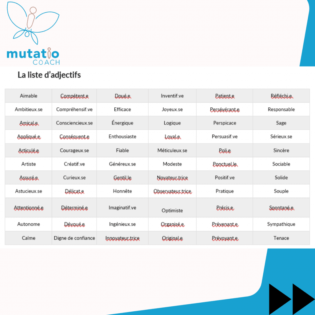 😉je vous propose un exercice qui fait partie de mes bilans de compétences.